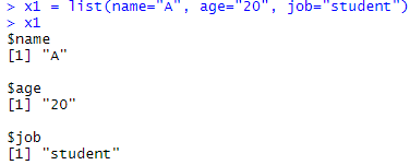 x1 = list(name="A", age="20", job="student")