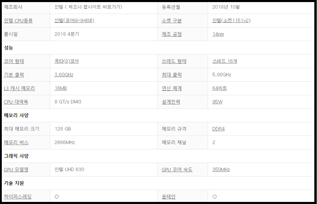 CPU를 구매할지 물어본다면 굳이 i9 9900K를 갈이유가 없지 않나 싶습니다.