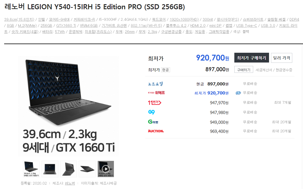 일단 레노버 LEGION Y540-15IRH i5 Edition PRO 제품은 90만원 초중반대의 가격대가 형성 되어있습니다.